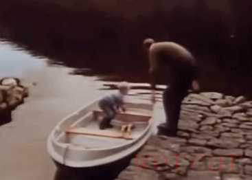 菲利普亲王带着小儿子划船。小儿子催亲王“快上来”!