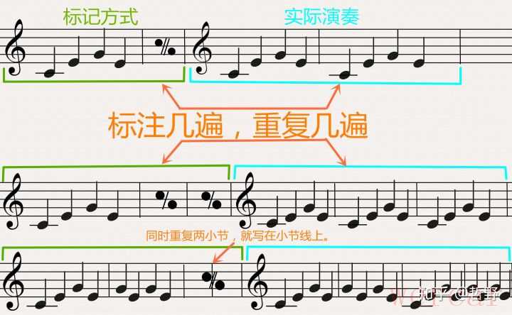 比如说旋律反复记号:“/”和小节反复记号:实心的“%”。