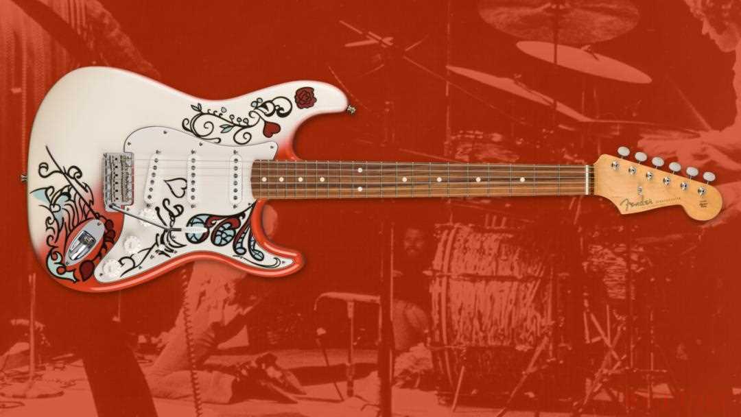 "Vai 问我们是否可以创造一种表面处理,使他的一把 Jem Universe 吉他看起来像 Jimi Hendrix 在 1967 年蒙特雷流行音乐节上烧毁的 Stratocaster。我们知道 Frank Zappa 拥有那把真正的 Strat,所以我们找到了一张 Frank 与那把传奇乐器的照片。