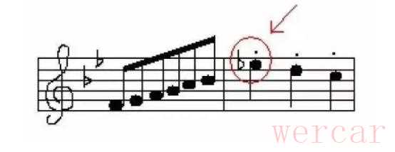 (7)记在音符前面的变音记号叫做临时升降号。(表示对变音记号后面一小节内的该音有效);
