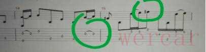 在器乐曲中用连线来划分乐句:弦乐曲中表示用一弓拉完连线内的乐句;管乐曲中表示用一口气吹奏完连线内的乐句。