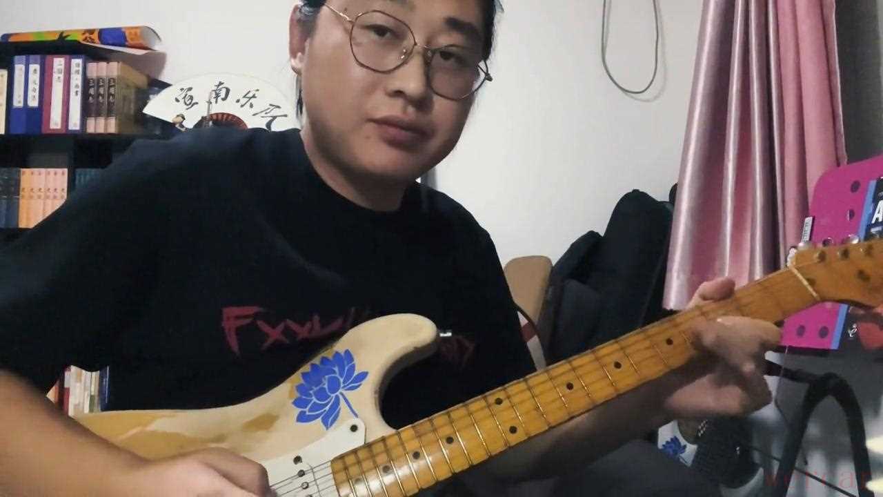 先来看个视频:《蓝莲花》的间奏。通过这位吉他手的改编,让这首歌充满了爵士乐的味道。不难听出他弹的每一个音都掷地有声,这跟他的拨片方向有很大的关系。