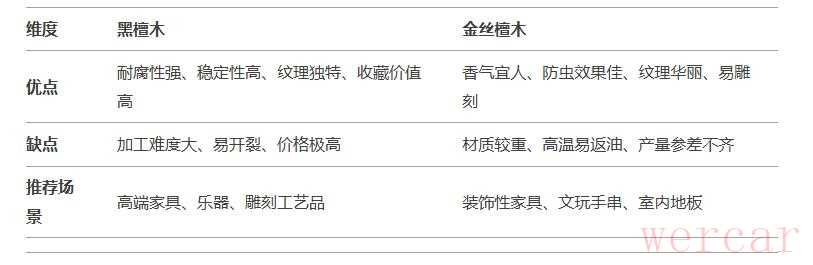 2. 注重美观与香气:金丝檀木的金丝纹理和檀香更符合装饰需求。