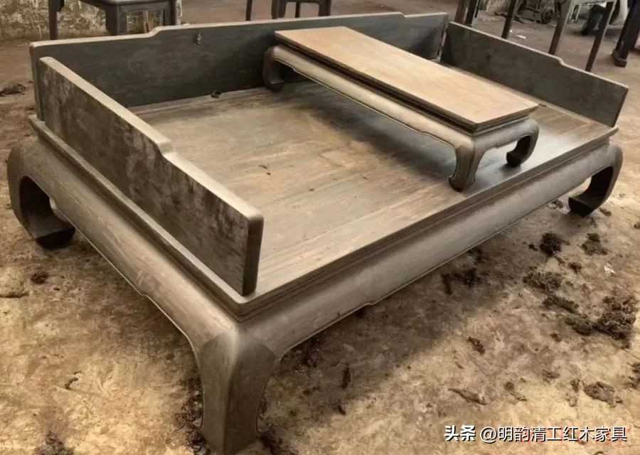 紫光檀+黄杨木,无漆无蜡如果对家具进行烫蜡处理,则木材颜色转为纯黑色,与乌木接近。只有经过长期使用或经过特殊作旧处理,才有会接近老紫檀的色泽。因木材硬重,加工比普通木材困难,但锯切、刨光、打磨都可顺利进行,打卯困难一些,油性太大粘钻。由于木材硬重,与其他材质相比,缺少木质感。
