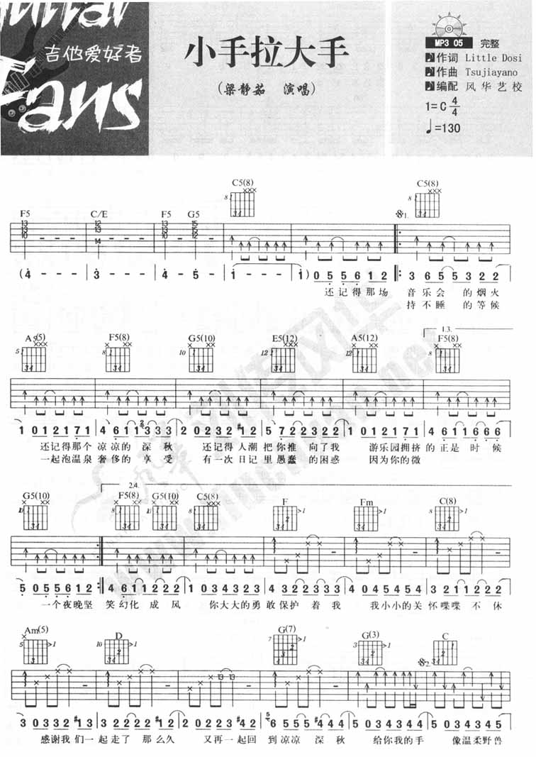 《小手拉大手》是梁静茹的一首经典歌曲,吉他弹唱时需要注意以下问题: