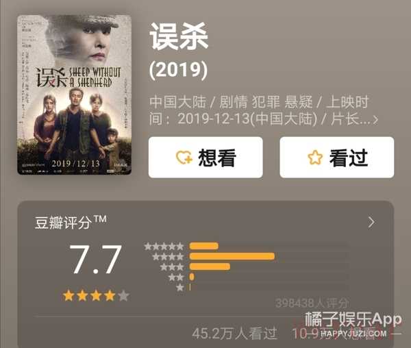 去年他主演的《误杀》上映,豆瓣评分7.7,