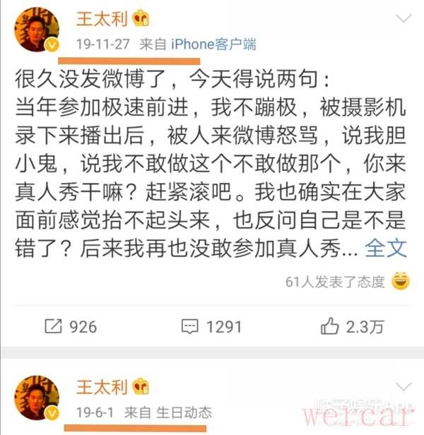前面不是说了吗,王太利微博更新频率保持在一年10条左右,