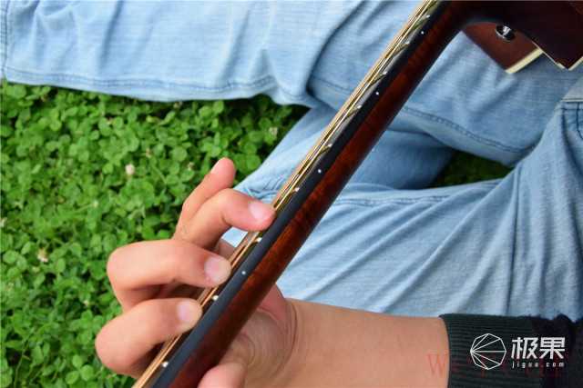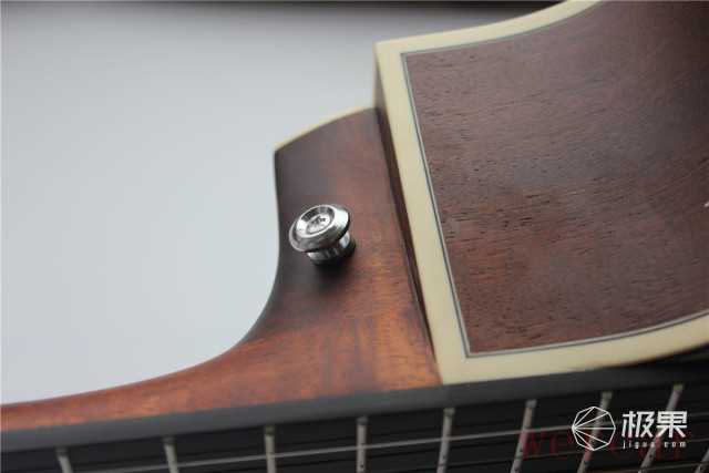 桃花心木的琴颈粗细适中,单手能完全握住且手感舒适。