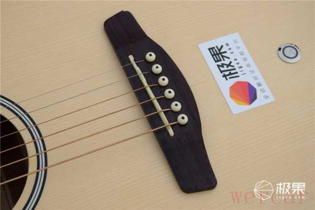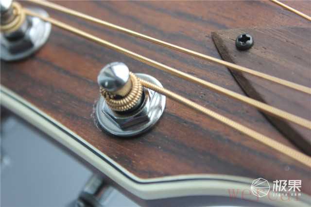 在琴码下有一个铁质的拉丝按钮,这就是Geek智能吉他的开关了。