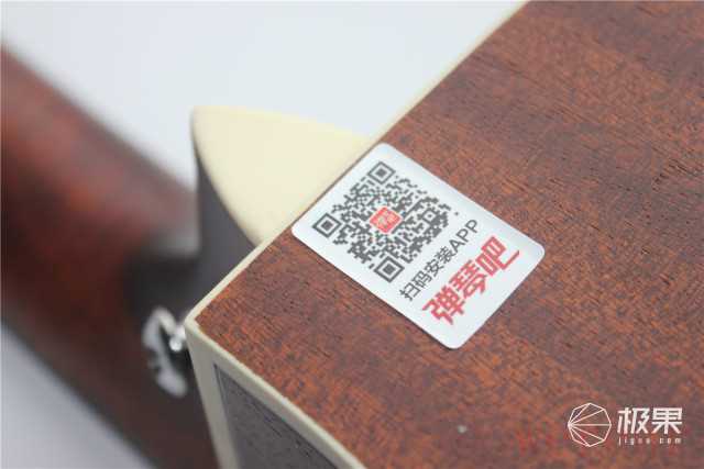 吉他背部有弹琴吧的二维码,看到忍不住想吐槽。明明说明书中已经有App的二维码了,像我这样有强迫症的人会忍不住想要撕除,因为看上去非常不搭配。虽然厂商的本意是想让用户通过手机扫描下载App以便连接,但好像电线杆的广告一样,如果能将二维码直接印在纸盒上可能会更好。