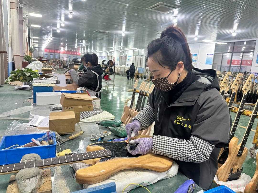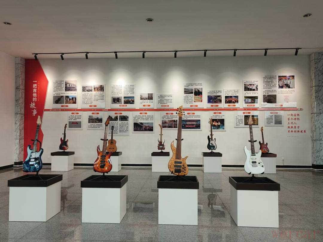 不仅如此,当地还将优秀传统文化元素融入吉他设计理念,青花瓷纹样、非遗漆艺技法、本土民俗特色,皆成为设计师的灵感源泉,造就出独具韵味的吉他产品。
