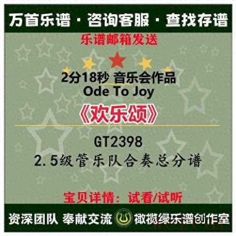 《欢乐颂》GT2398,2.5 级管乐队合奏总分谱。