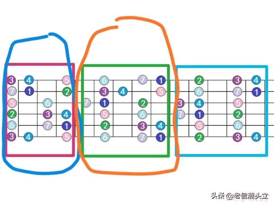 很多人记不住音阶,是因为把每个音的位置拆开来记,其实音阶在指板上是“成串的图案”,就像玩连连看,记住图案比记单个点容易多了。