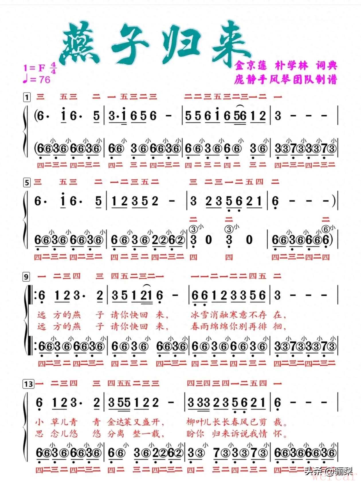 燕子归来手风琴简谱详解,详尽左右手指法指导解析