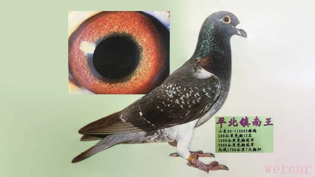 1998年2000公里放出后连续下雨,已经8岁高龄的此鸽又冒雨夺得了山东第四名,后因南、北齐飞,此鸽又被命名为“平北镇南王”。这种不死必归的性格,使它的子孙在各个级别的比赛中都有好的发挥,它也成为一代名鸽。