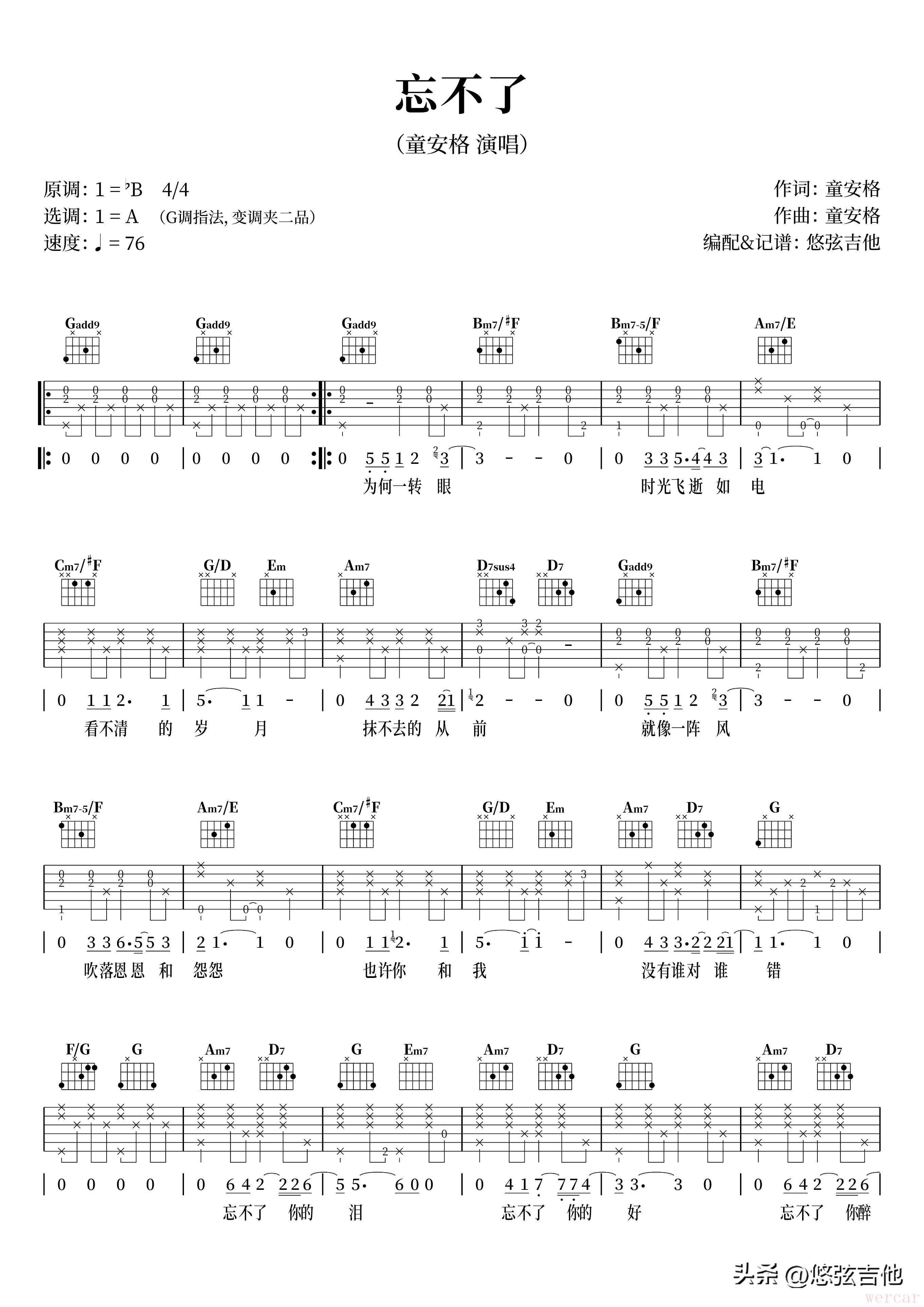 忘不了吉他弹唱曲谱大放送,珍藏版吉他弹唱教程分享