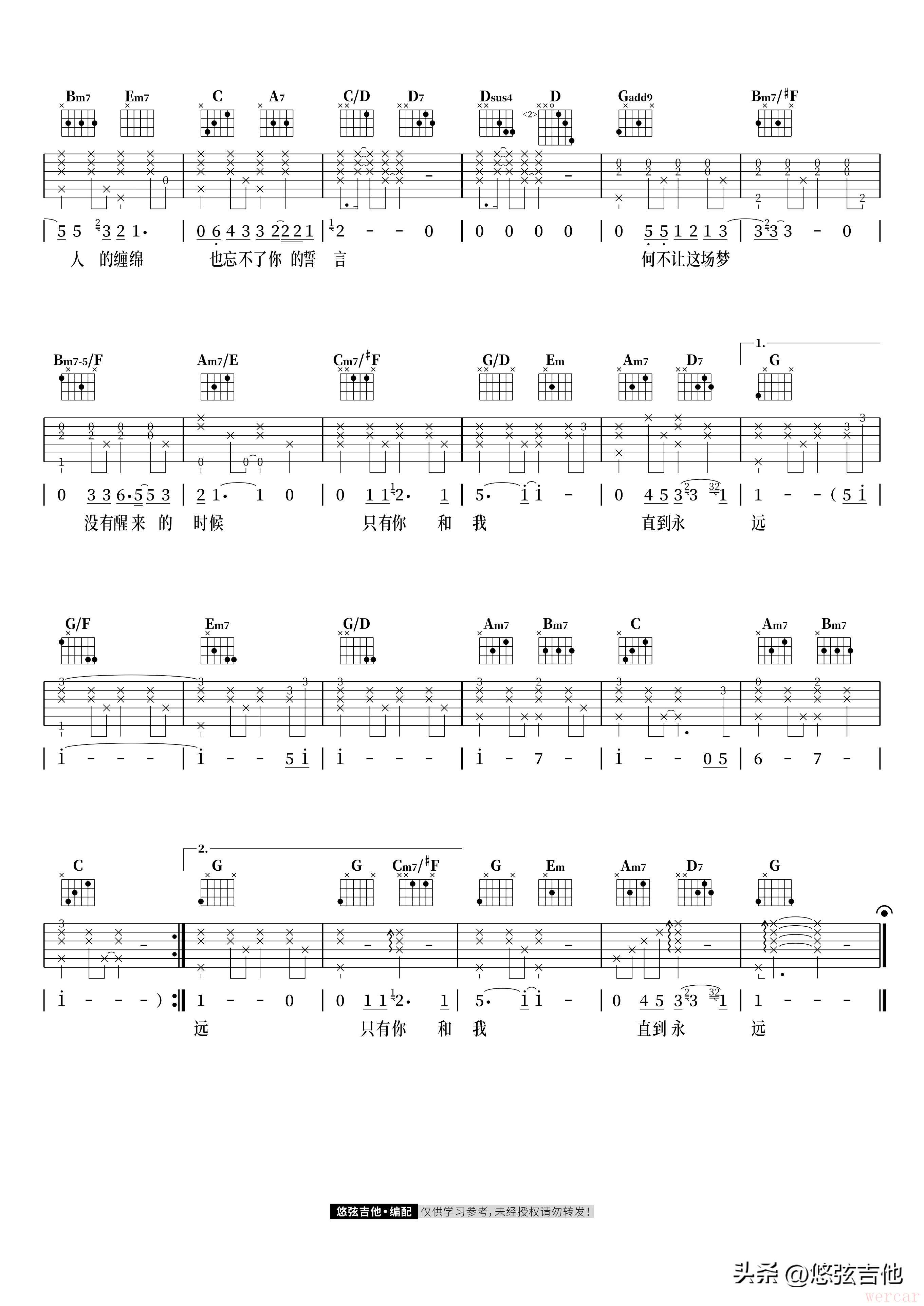 这首歌原调为bB调,我采用G调指法进行的编配,变调夹二品唱的A调,唱原调的话可将变调夹夹至三品。