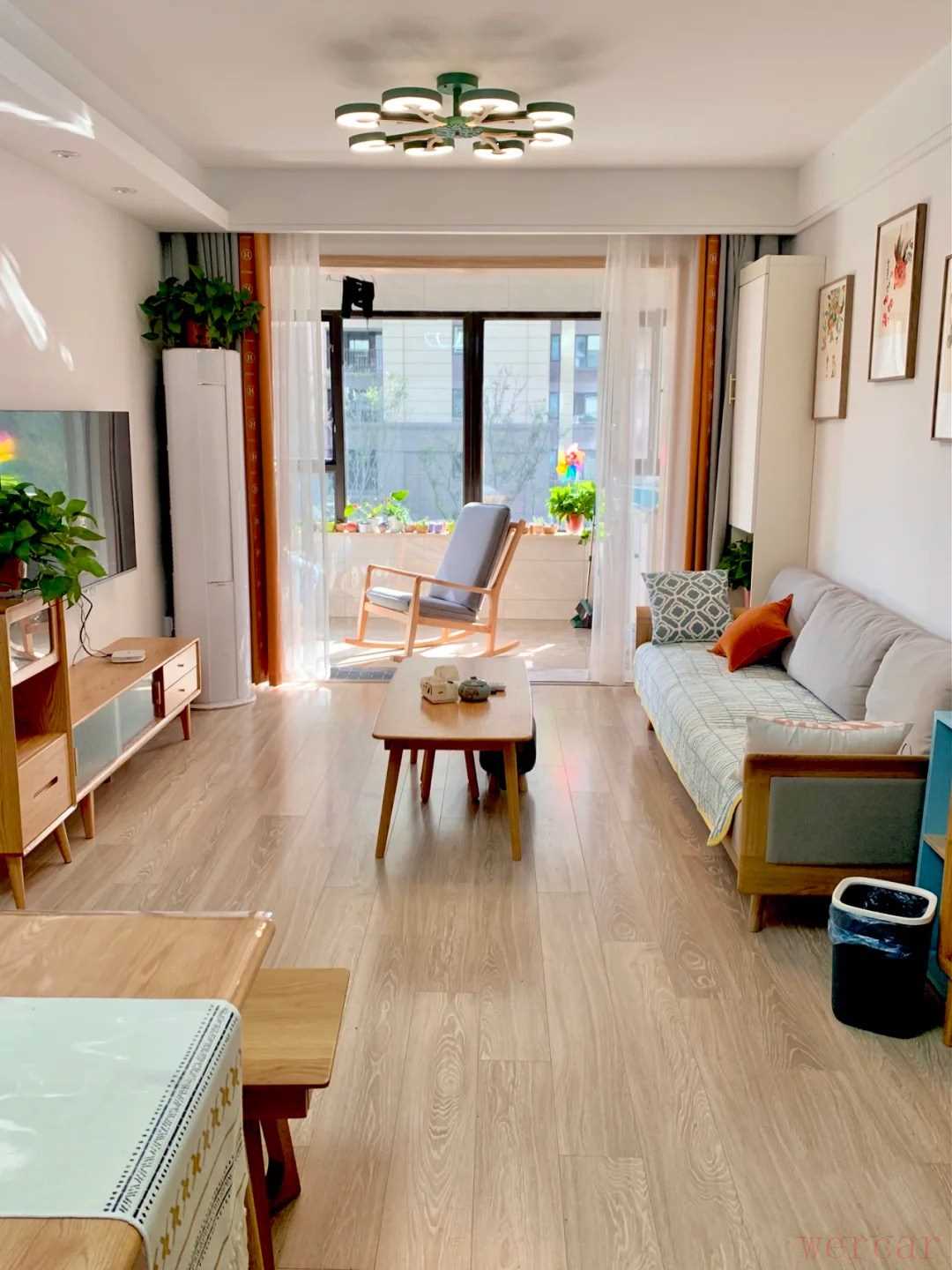 不知道现在大家对家居的审美是什么样的?是喜欢样板间那样一尘不染的华丽精致呢,还是喜欢简单随意,有柴米油盐,充满生活气息的家呢,其实我更喜欢后者,一直认为有烟火气儿的房子才叫家。本案的屋主跟我的想法也是一样,平时工作忙碌的她,渴望回到家能有一个轻松悠闲的环境,所以非常喜欢自然朴实的原木风,其实在买房之前她就对这种风格心心念念了,现在房子终于装好了,效果是之前想象中的样子,整个家居氛围温馨又接地气,展现出了生活最真实的模样,而让她很意外的是,朋友参观以后却说像出租房,不够漂亮精致,这让她很苦恼,说句实话,反正我是没有见过这么大方温暖的出租房,下面给大家晒晒,大家来帮忙看看。