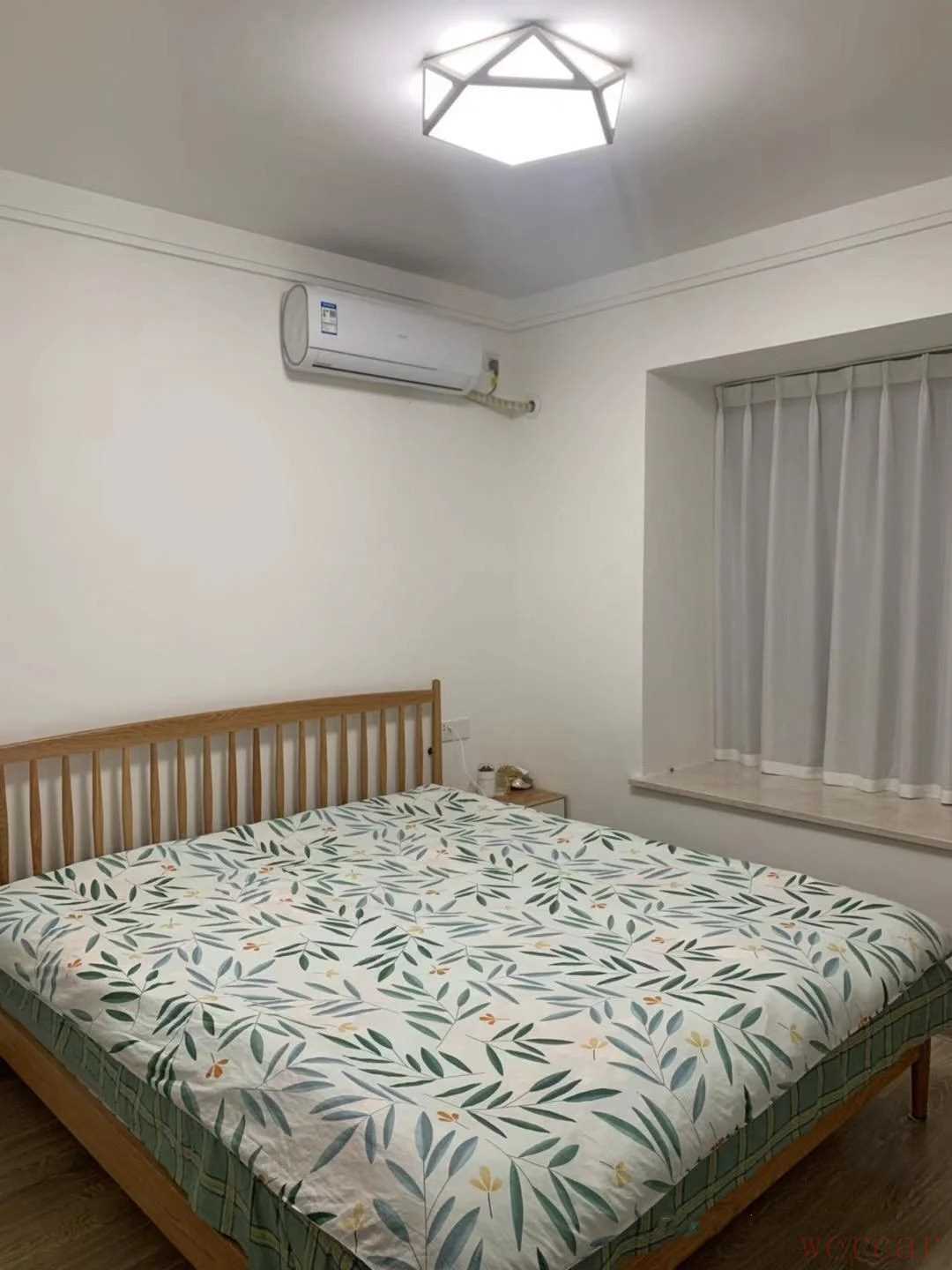 这间是次卧,空间很小,床靠着窗户摆放着,腾出更多走动的空间,来客人可当客房用,飘窗台上放着一盆绿萝,美化环境的同时给房间增添一些活力。