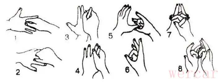 第二,每次弹吉他之前,先要做个手操,我们的手指各关节、胫骨先做热身运动!双手手指对手指挤压的方法能让手指充分准备。