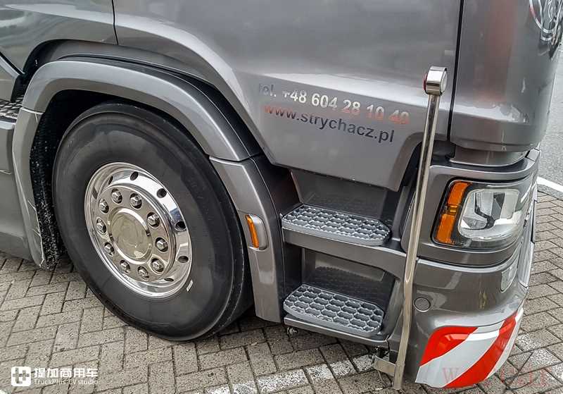 S级车型在外观方面具备极强的视觉感,武士灰涂装在外侧镀铬斯堪尼亚各类标识的映衬下格外显眼,文化气息格外浓厚。