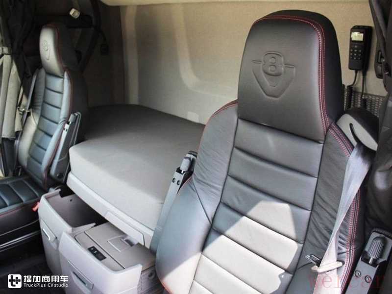 斯堪尼亚系列车型模块化设计极为突出,后排卧铺宽度与R系列车型基本一致,对于欧洲本土的跨境大件运输来讲,具备宽敞的舒适型双层卧铺也在情理之中。