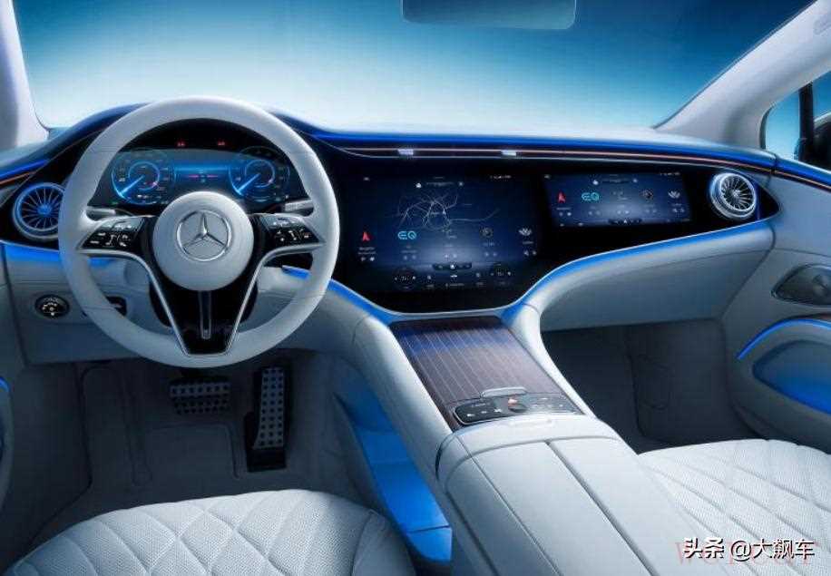 EQS是首款搭载奔驰MBUX Hyperscreen系统的车型。从驾驶席到副驾驶的三块OLED曲面屏组成的大屏幕,将会向人们展示奔驰更加智能化的座舱、更便捷的人机交互、甚至更人性化的辅助驾驶能力。
