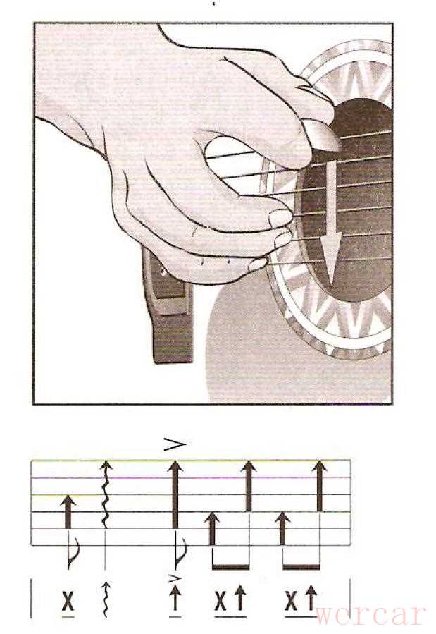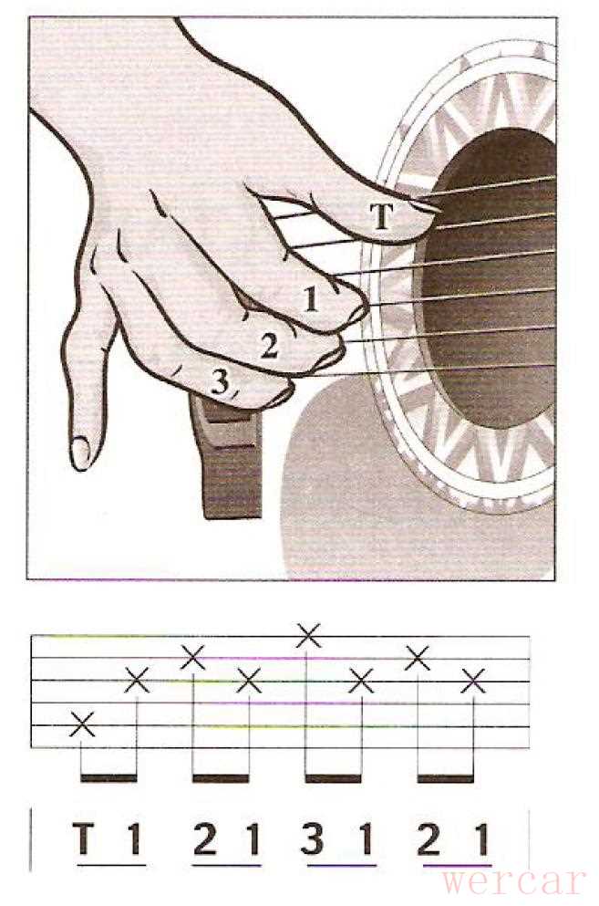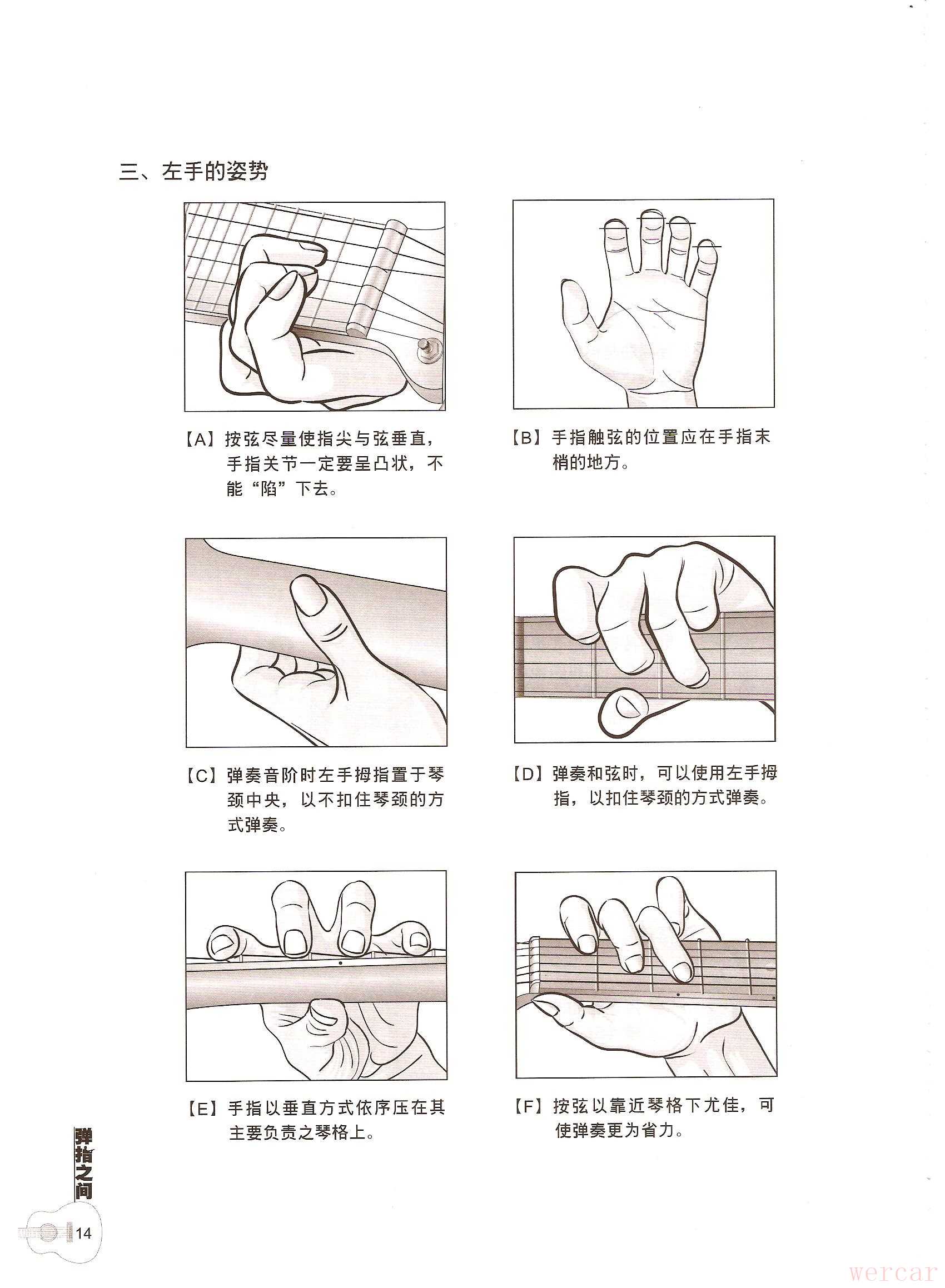 (2)弹奏指法,笔者建议大家,不妨将右手的指甲稍微留长,这样能使弹奏的音色更加明亮。