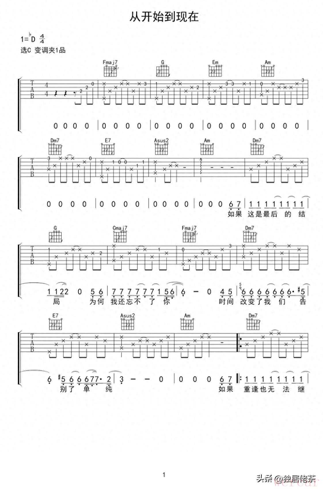 能火起来的,也都是翻唱。你唱歌好听吗?这首《从开始到现在》是一部韩剧的主题曲,吉他谱送给你,拿去翻唱吧,红了别忘了给我点个赞。
