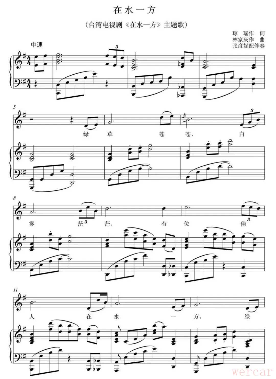 在水一方钢琴伴奏曲谱分享,唯美旋律,感受诗意时光