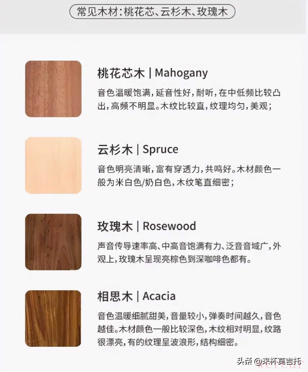 合板琴指的是琴箱整体采用的是三合板,复合木板非实木。优点是造价便宜、几乎不用操心保养问题;缺点就是共鸣、音量、音色相对差一些。