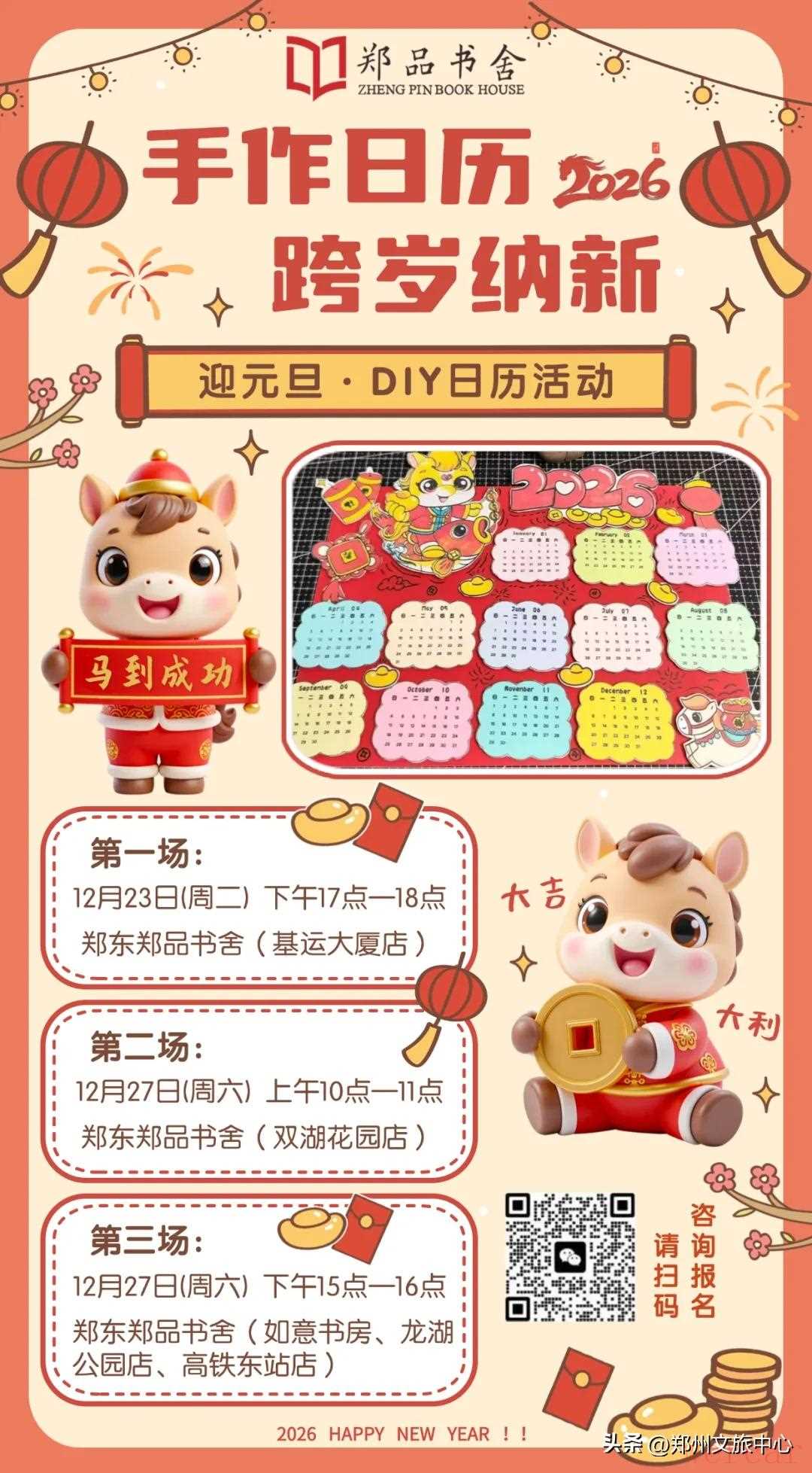 活动内容:手作日历,跨岁纳新。签到领取材料并制止,大家快来郑品书舍参加迎元旦·DIY日历活动吧!
