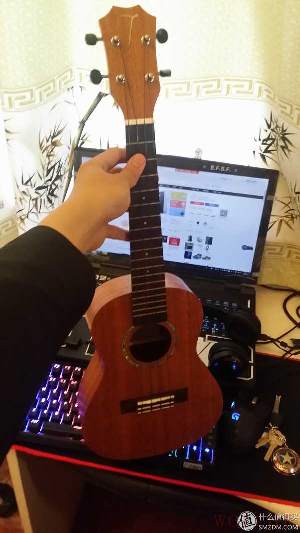 TOM的TUC-230,尤克里里也叫乌克丽丽,是一种四线的小吉他。这把是桃花芯面单,还有就是碳素的琴弦手感很棒。除了每天弹给女王大人听还有就是LOL选英雄和载入游戏时打发打发时间。如果有同样兴趣的朋友可以一起交流交流呀。