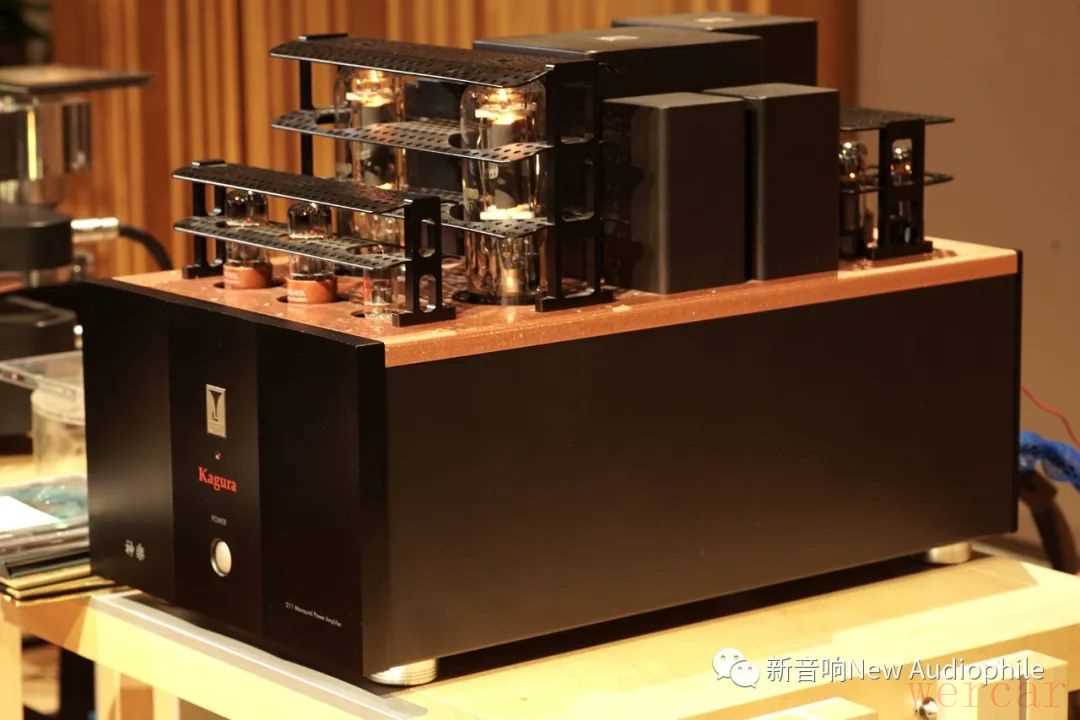 ▲Kondo的Kagura 2i单声道后级,1只12AU7双三极管负责输入增益,2只6SN7阴极随耦做为驱动级用以驱动2只推挽的211功率管。Kagura 2i共享了3个变压器,机箱后部上方的电源变压器、机箱内还有放大和整流变压器,另有4个扼流圈进行电源滤波,后头跟着耐压1000V的油质电容提供充裕电源。输出功率50瓦,每部重达62公斤