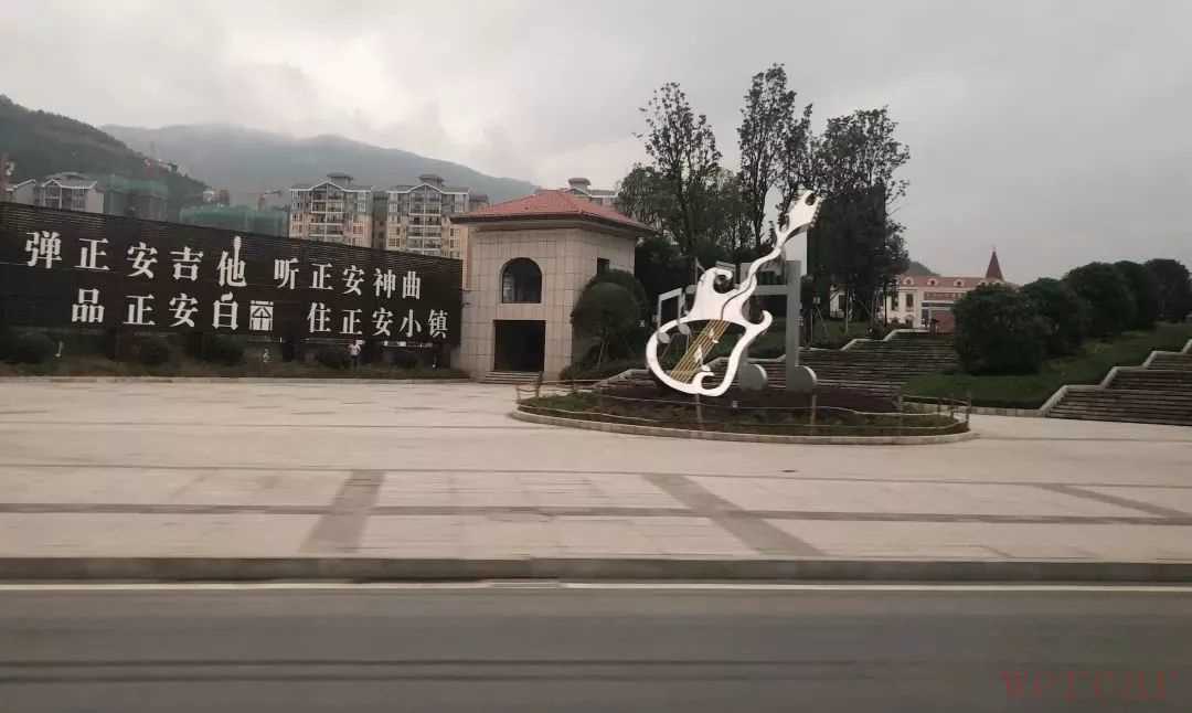 吉他产业园,原本并不在行程安排内。然而,当你进入正安县,路灯的设计上有吉他,广场标示性地标是吉他,大桥也是音符的模样……对于这样一个已经渗透到城市骨髓里的东西,让我们对它产生了极大的兴趣。于是,临时调整行程,一群人怀揣着好奇走进了这个外观看起来一点都不显山露水的吉他产业园。