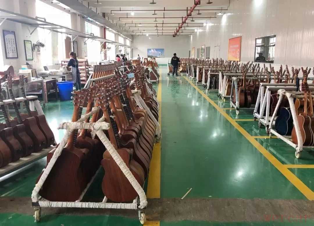 公司现有木吉他、电吉他两条生产线,2017年年产量达到20万把吉他,产值达9800万,代工生产多个国际品牌吉他,远销日本、欧美、拉美等市场。装配车间、配码房、打包车间、拉上枕车间……各个生产车间各自作业,流水线生产。