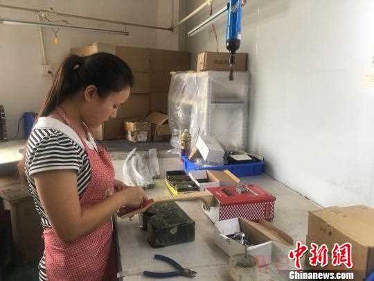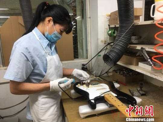 工人正在给电吉他安装零配件 康孝娟 摄