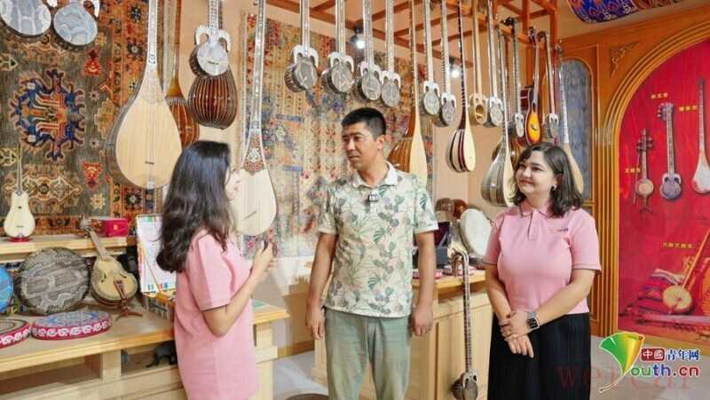 “弹布尔的桑木要选沙漠边缘的,音色才够透亮!”在“百年乐器村”托万克吾库萨克村,非遗传承人后代马穆提·热合曼演示着民族乐器弹布尔的制作。带队老师迪力努尔接过半成品试弹,当第一个音符响起,她猛地抬头:“这和冬不拉的调音逻辑很像。”马穆提·热合曼眼里的自豪与迪力努尔脸上的雀跃,在镜头里凝成了美妙的瞬间。