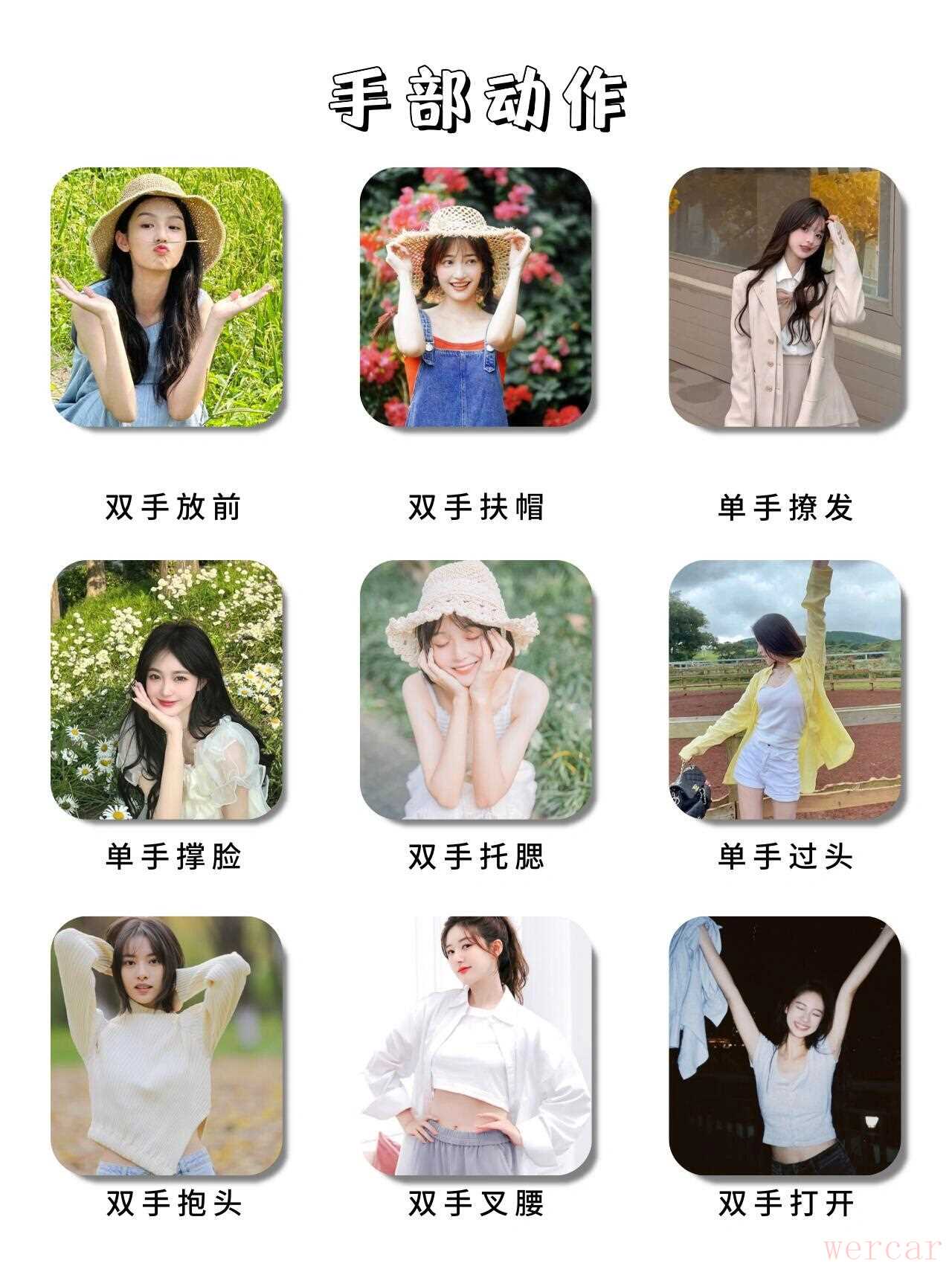 拍照不要呆呆的只会摆剪刀手,一些丰富好看的手部动作也要学起来,比如:双手放前面,抬起双手扶帽子,单手抬起来撩头发,单手撑脸,双手托腮显脸小,单手举过头,双手抱着头、双手叉腰、双手打开等,这样的手部动作是不是就很自然有生命力,好看的,大家学起来。