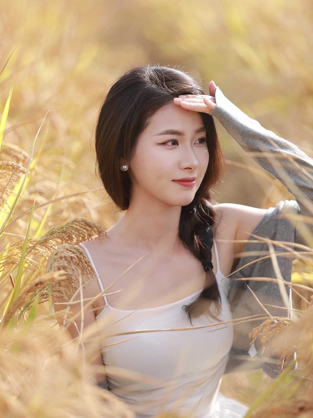构图的时候,把女朋友放在构图画面的中下两格位置,脚贴构图画面底部,头顶稍微留白,这样就能拍出特别显高好看的全身照啦!