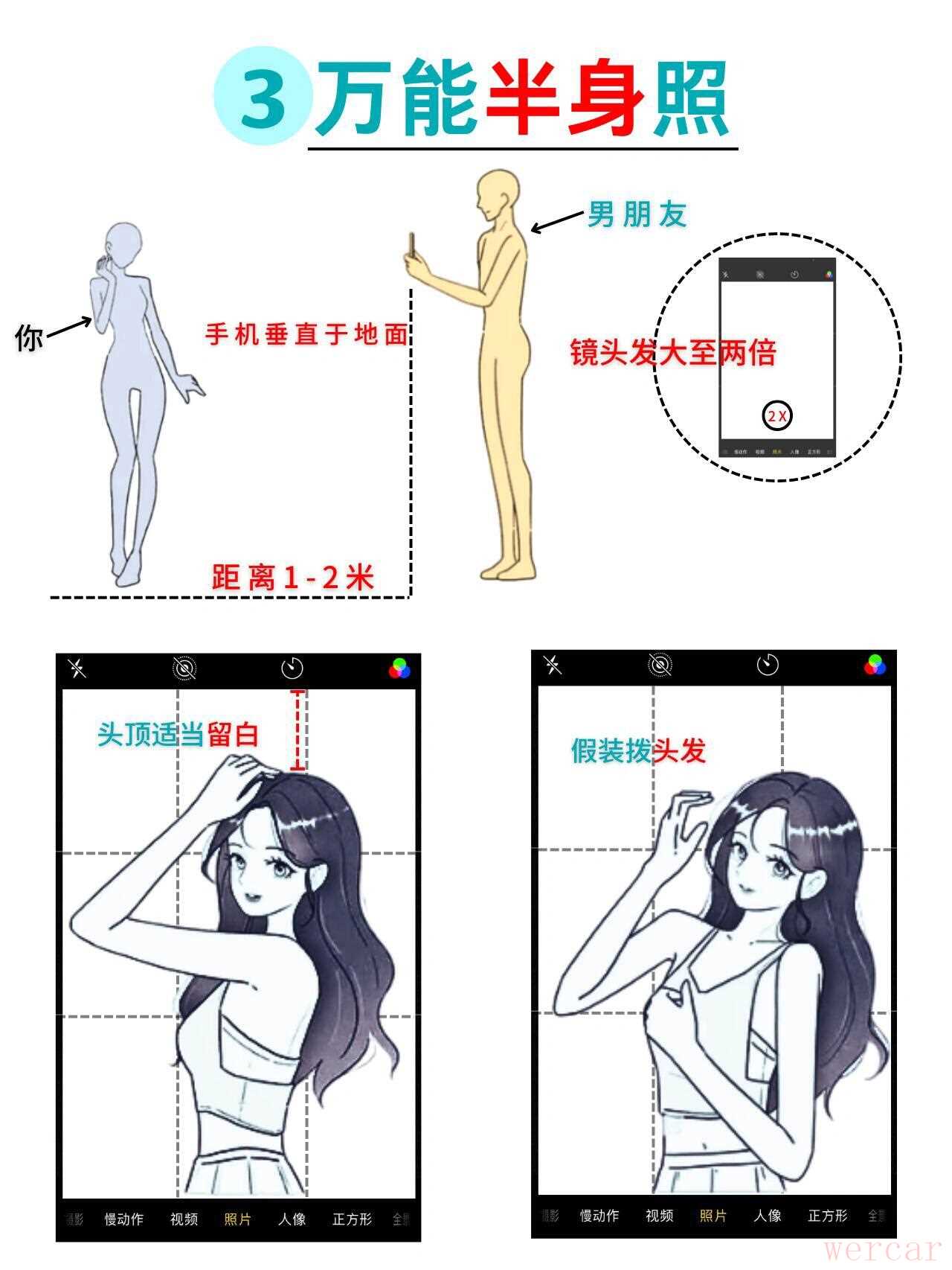作为女朋友的你,拍半身照的时候,可以摆拍一些假装撩发,脸颊比v等姿势,怎么自然好看怎么来。
