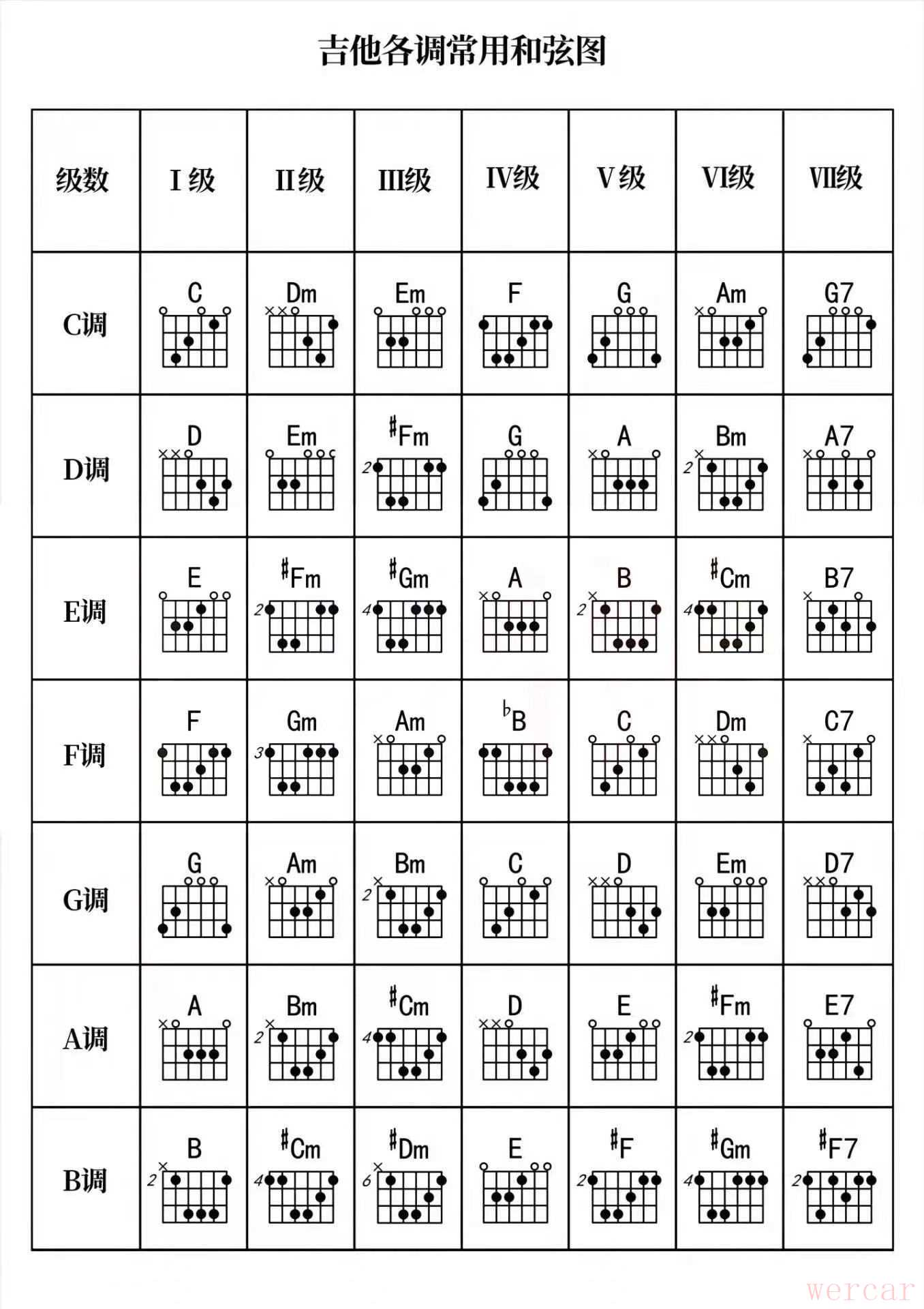 吉他十二调音阶指板图解析!详尽和弦指法图解