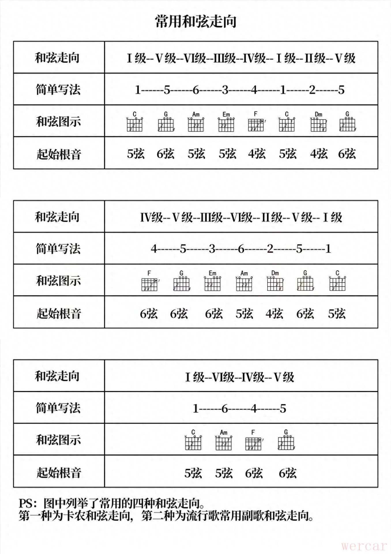 PS:图中列举了常用的四种和弦走向。