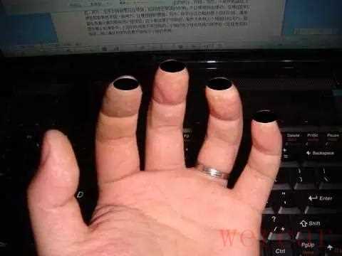 关于手指触弦的部位,之前有朋友看了网上的图,手指上画了一条直线,表示弦的位置,可能有一定的误解,我大致说明下,手指触弦的部位应该是指尖的一块区域,说白了,就是你手指比较容易长茧的区域,而且是在不碰到其他弦的前提下,用指尖按住弦。如下图,不用过分纠结于是否平行于指甲。