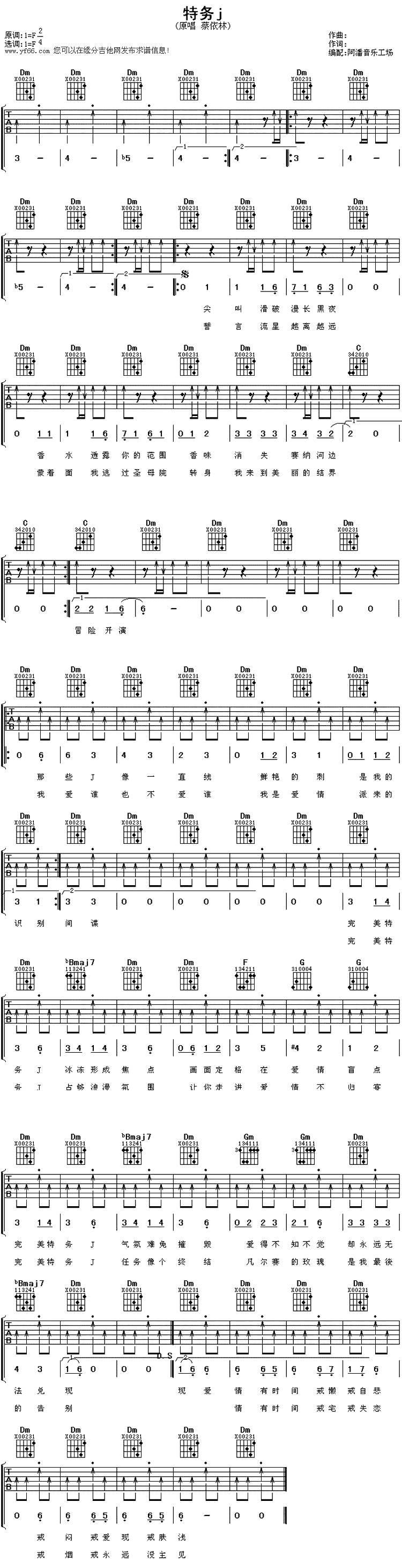 蔡依林的《特务J》是一首结合了流行、电子和摇滚元素的流行歌曲,吉他弹唱时需要注意以下几个问题: