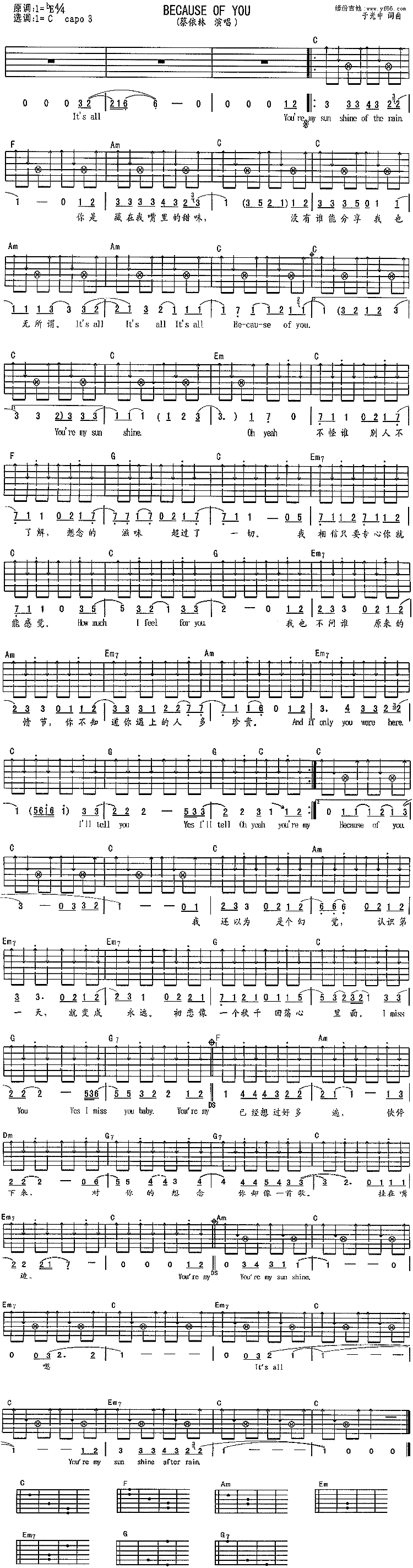 蔡依林的《Because》是一首深受歌迷喜爱的歌曲,吉他弹唱时需要注意以下几个问题: