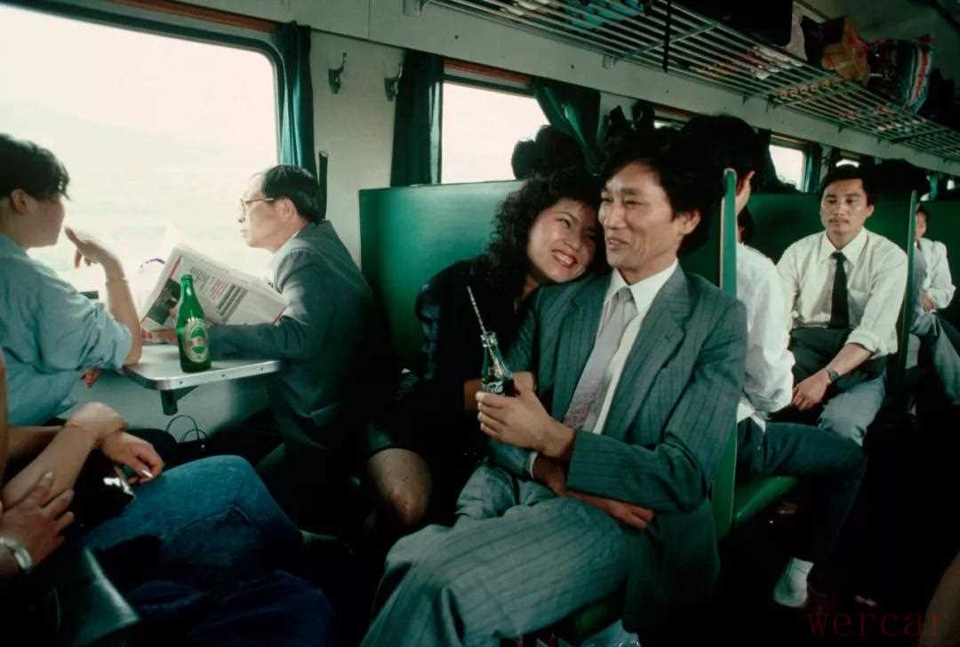 1989年,4月28日,火车上的一对情侣正旁若无人地展示着亲密。随着时代的进步,中国人不仅越来越习惯了用肢体语言去表达情感,更尝试着用更为宽容的目光去看待热恋中的人们。