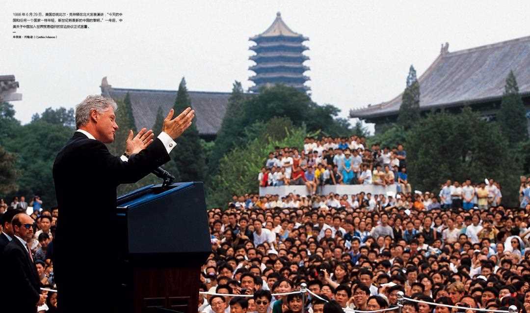 1998年,6月29日,时任美国总统比尔·克林顿在北大发表演讲:“今天的中国和任何一个国家一样年轻,新世纪将是新的中国的黎明。”