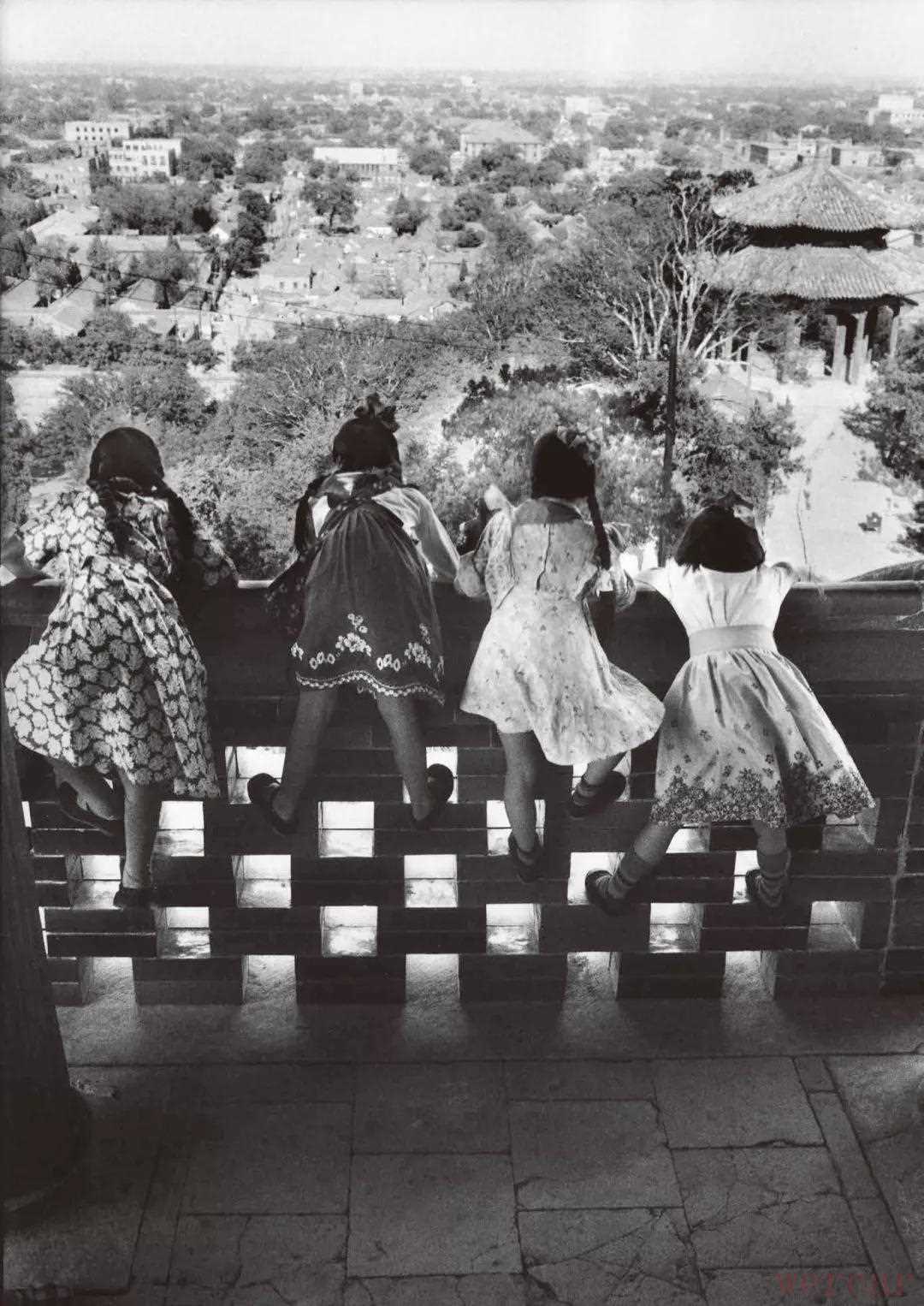 1956年,北京,景山公园万春亭上的四个女孩。她们登上高处,仔细地打量着这座御苑。