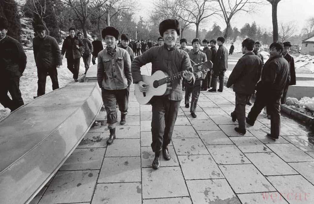 1979年,3月,在北京街头弹奏吉他的少年。不久之后,他们这一代人中间将诞生出中国第一代摇滚歌手。